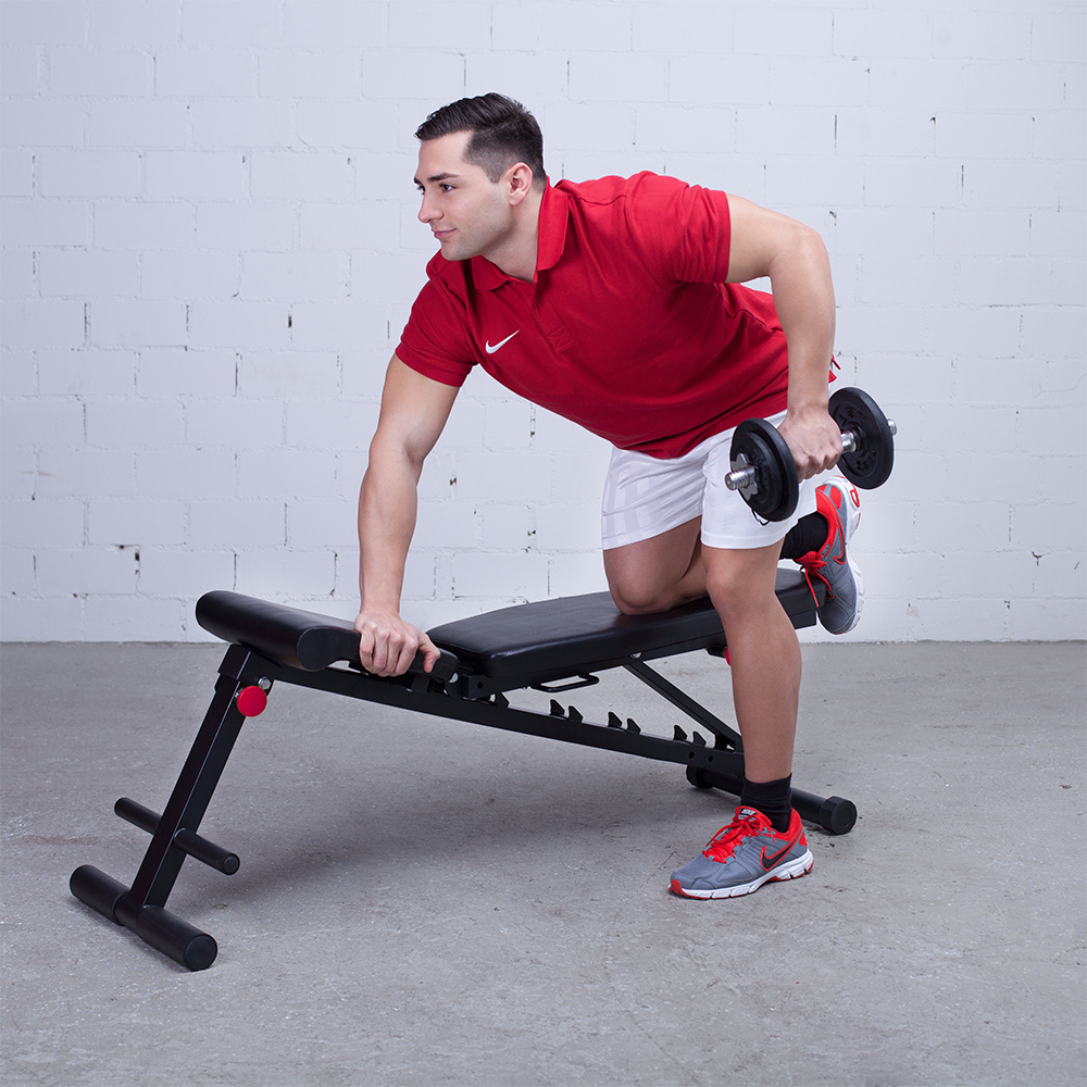 Insgesamt ist die X-Press Hantelbank in aufgefaltetem Zustand 135 cm lang und 43 cm breit, was normale Werte einer bei einer Hantelbank sind.Durch das Rückenteil welches 7-fach verstellbar ist, kannst du garantiert jede erdenkliche Übung perfekt ausführen.